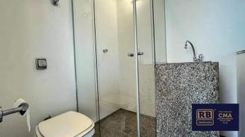 Banho social com box em blindex, armários e espelhos