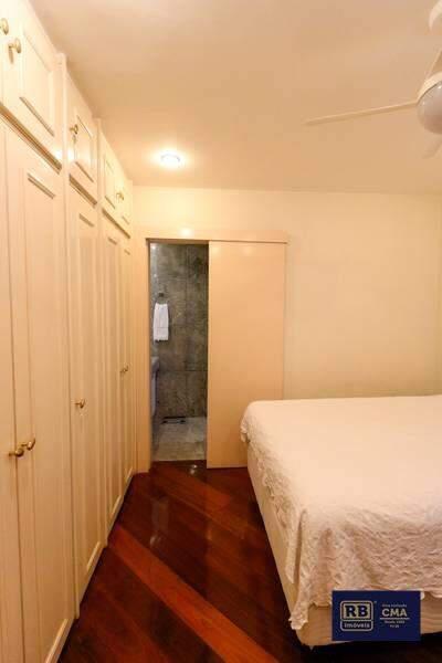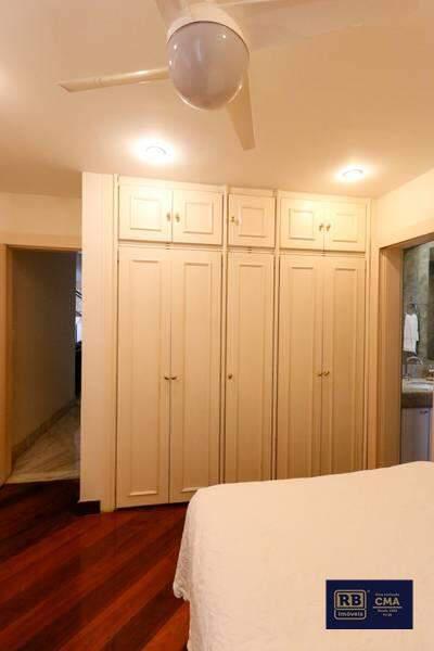 04 Quartos com armários e piso de tábua corrida, sendo 02 suítes com revestimento total em mármore, armários, espelhos, box de blindex, hidromassagem e closet na suíte máster;