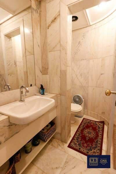 Lavabo com revestimento total em mármore;