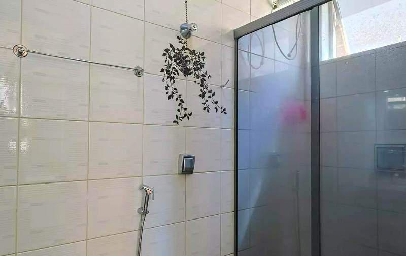 3 quartos amplos, todos com piso em vinílico de madeira, armários, sendo uma suíte com bancada em granito, armários, espelho e box em blindex