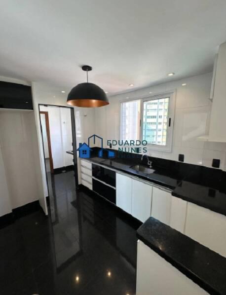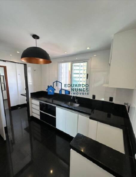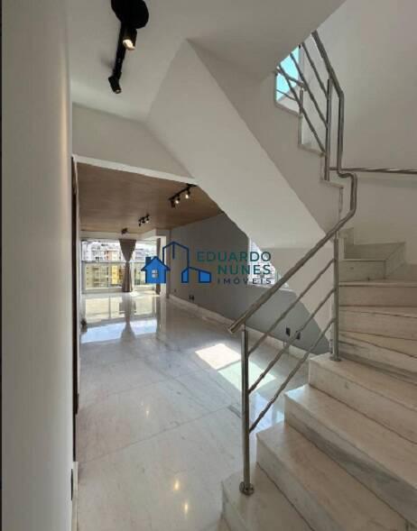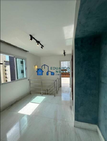 Cobertura com sala para vários ambientes, piso em mármores, 4 quartos, com esquadrias de alumínio com venezianas, armários, piso em tabua corrida, suite com closet, 05 banheiros, tanto a suíte como os outros banheiros com box em vidro temperado, armários, bancada e piso em granito preto, cozinha toda montada, com vários armários, bancada e piso em granito preto, área de serviços e DCE. Acesso ao segundo piso através de escada em mármore com guarda corpos.