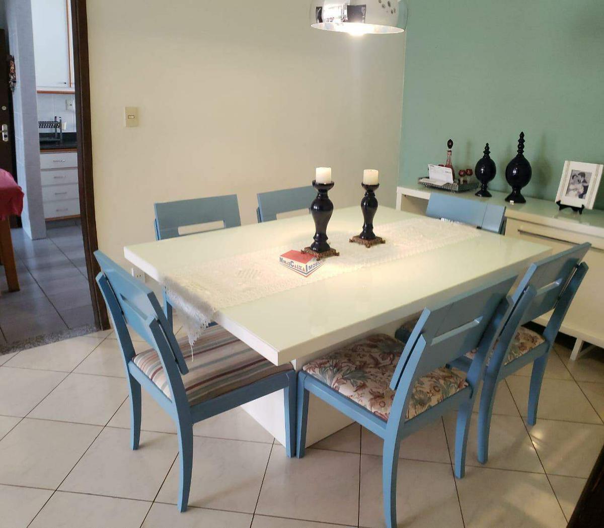 O imóvel possui três quartos sendo uma suíte com banheira de hidromassagem, Closet com armário planejado, amplas salas, cozinha com armários, área de serviço, banheiro social com armário e box. Moveis planejados em quase todos os ambientes.