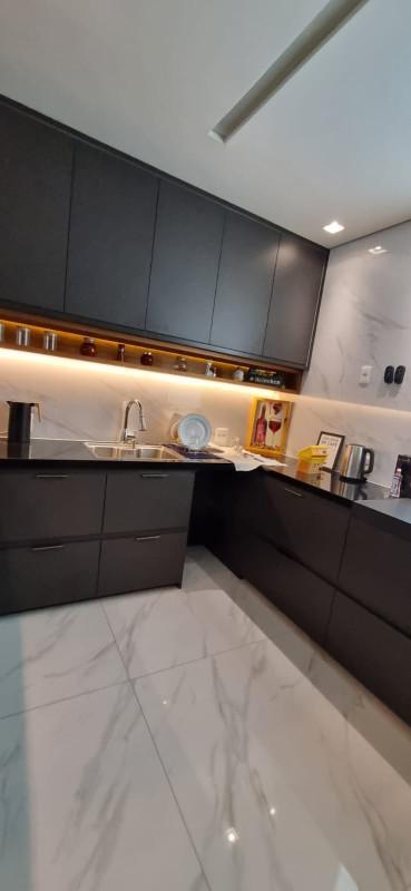 Cozinha americana com bancadas em granito e armários planejados de altíssima qualidade