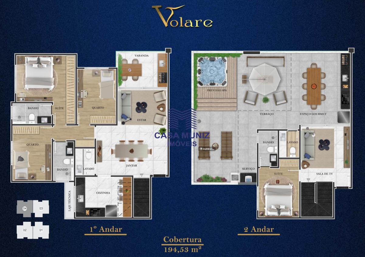 Apartamento de cobertura 4 quartos, 194,53 m², varanda e lazer na medida! o edifício mais imponente da região, projetado com tudo que você e sua família precisa! condomínio inteligente e econômico: aquecimento solar com apoio a gás, iluminação em led com sensores nas áreas comuns; medidores individuais de água e gás; elevador com código de acesso; fechaduras eletrônicas nas áreas comuns; área técnica para ar-condicionado. pilotis com: guarita; hall social; academia; banheiros; salão; espaço gourmet; playground; lounge; piscina. apartamento tipo com 194,53 m², 03 quartos no primeiro piso, sendo 01 suíte, 03 vagas de garagem cobertas, banho social, ampla sala para dois ambientes, circulação com roupeiro, lavenidaabo, varanda com previsão para gourmet, corredor com roupeiro. 2º piso da cobertura: 01 quarto suíte, acesso com elevador, sala de tv, espaço gourmet coberto, terraço descoberto, lavenidaabo, área de serviço. obs: o valor e condição poderá sofrer alteração sem avenidaiso prévio, gentileza entrar em contato com nosso setor comercial.