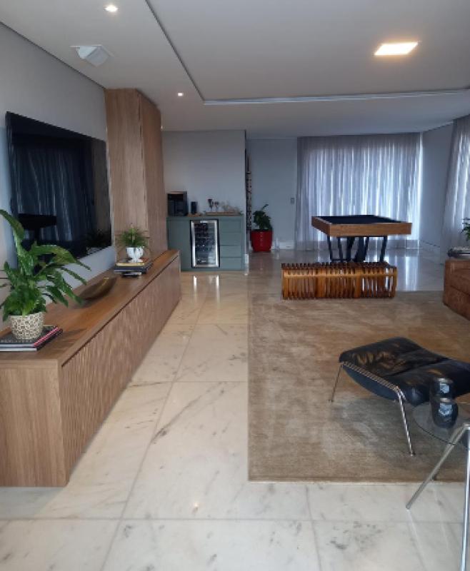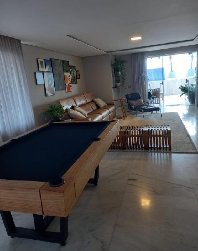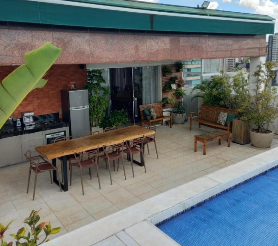 Essa cobertura possui 5 quartos, sendo 3 suítes. O segundo andar possui um terraço com sala ampla para três ambientes e uma suíte. Um diferencial é a Piscina aquecida integrada com uma área gourmet toda reformada . A cobertura conta com total privacidade sem prédios altos ao lado.