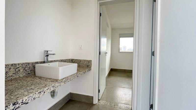Lavabo com pia em cuba de apoio e bancada em granito