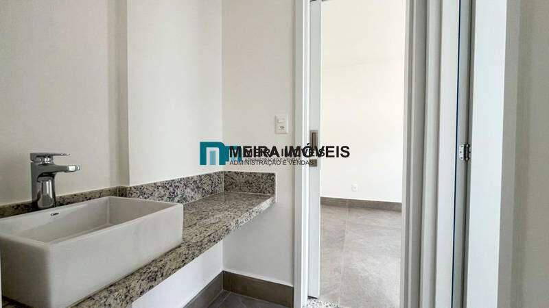 Lavabo com pia em cuba de apoio e bancada em granito