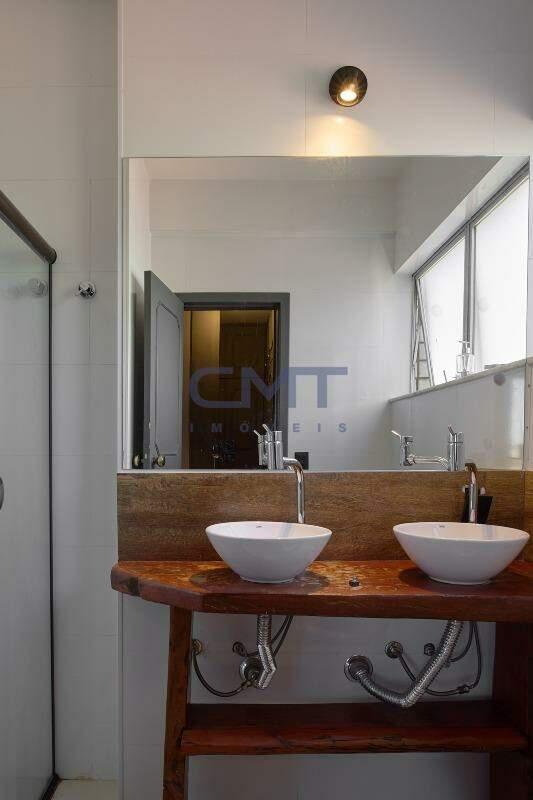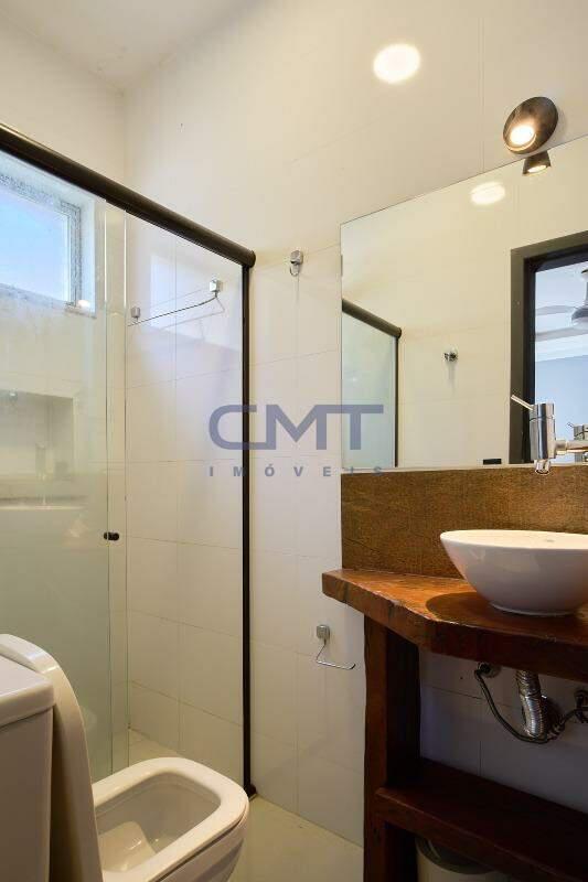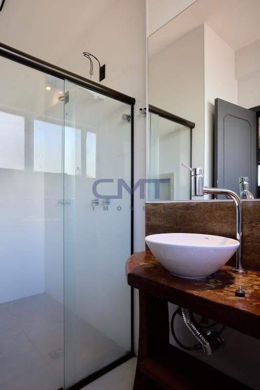 3 banhos, sendo 2 suítes. Ambas suítes contam com bancada com cuba sobreposta e box em blindex.