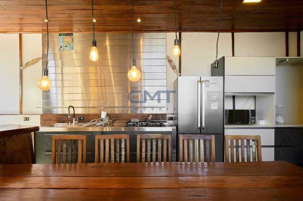 Área externa conta com espaço gourmet com excelente acabamento, contando com bancada em granito e armários planejados.