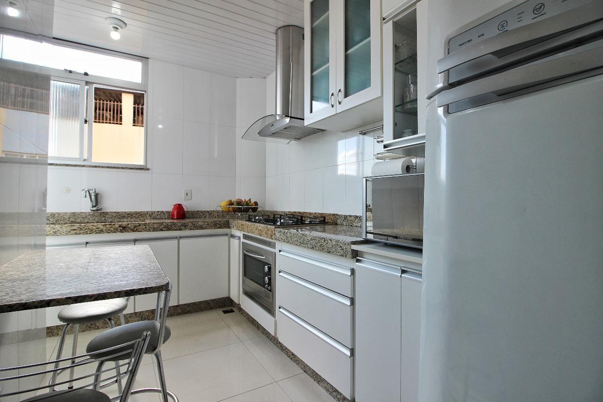 01º Pavimento: Sala ampla para 02 ambientes com rebaixamento em gesso, cozinha com armários planejados, bancada em granito, conjugada com área de serviço, banho social 100% revestido, com box em blindex, 03 dormitórios sendo 02 com visita definitiva, todos com armário planejado.