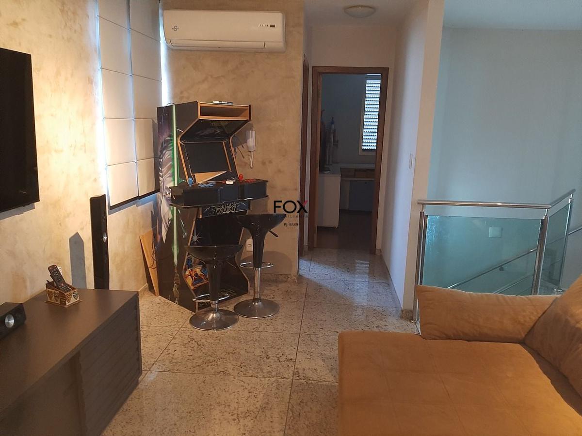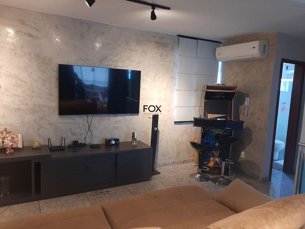 Prédio imponente, 100% revestido em granito, salão de festas, guarita com monitoramento, ótimos jardins, ótima localização. cobertura 1ºpiso: sala 2 ambientes, ampla e arejada, piso em granito, teto rebaixado em gesso com projeto luminotécnico; circulação piso em laminado, teto rebaixado em gesso, iluminação embutida; 4 quartos piso laminado, com armários, sendo 3 com ar condicionado; banho social e suite, piso e bancada em granito, armários, espelhos, box em vidros temperados, teto rebaixado em gesso, iluminação embutida; cozinha piso e bancada em granito e armários; área de serviço piso em granito, armários; dce (quarto transformado em despensa com vários armários, mas, fácil retorno; escada de acesso ao nível superior revestida em granito, com fechamento em vidro temperado e aço inox. 2ºpiso: sala piso em granito, ar condicionado, teto rebaixado em gesso, projeto luminotécnico; quarto piso laminado, ar condicionado, armários; banho social piso e bancada em granito, armário, espelho, box em vidro temperado; espaço gourmet piso porcelanato, cortina de vidro, bancada em granito, armários, cook top, churrasqueira, teto rebaixado em gesso, projeto luminotécnico; área livre, descoberta, piso porcelanato, contendo sauna e ducha 4 vagas de garagem livres, cobertas e demarcadas.