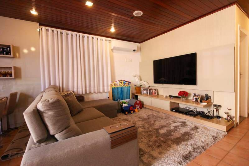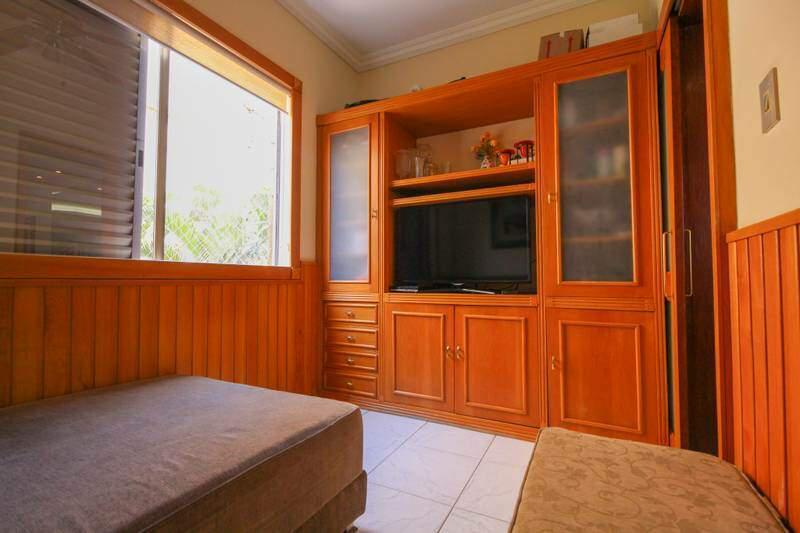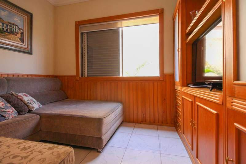 ¿ Sala de TV, com piso em cerâmica e armários planejados;