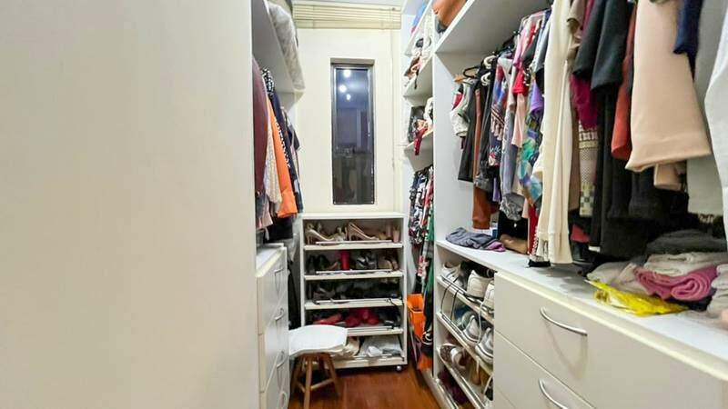 5 quartos com armários planejados e piso em tábua corrida, sendo 2 suítes (uma delas com closet) e 2 quartos com varanda.