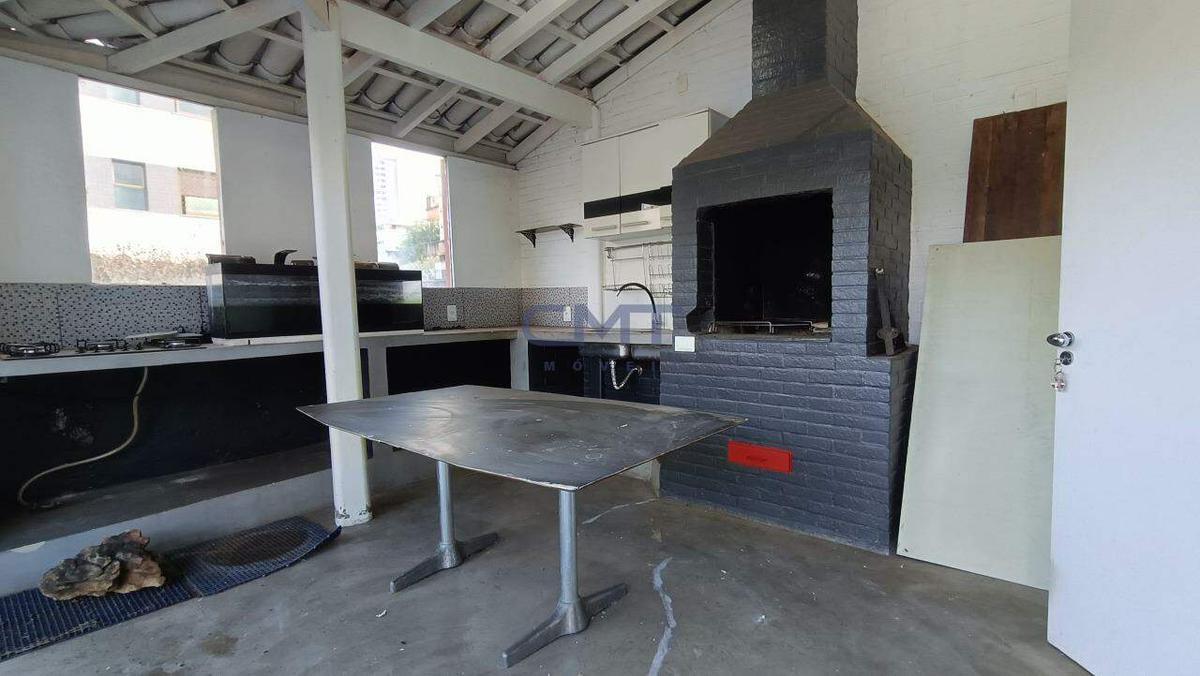 1 suíte com armários, um pequeno cômodo que hoje serve como atelier, um banheiro completo com box de blindex, uma sala ampla e um grande espaço com bancadas, fogão e churrasqueira. Preparado para se tornar um excelente espaço gourmet.
