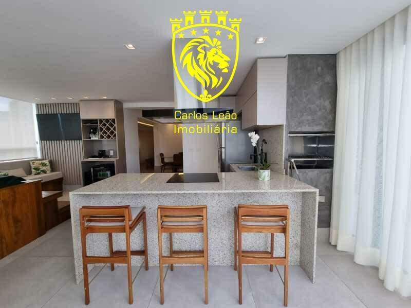 Área gourmet com piso em porcelanato, bancadas em granito, armários planejados, hidromassagem com deck de madeira e área livre de aproximadamente 70 m².
