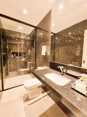 02 banheiros social e suíte com bancadas em granito, espelhos, porcelanato. box em vidro temperado.