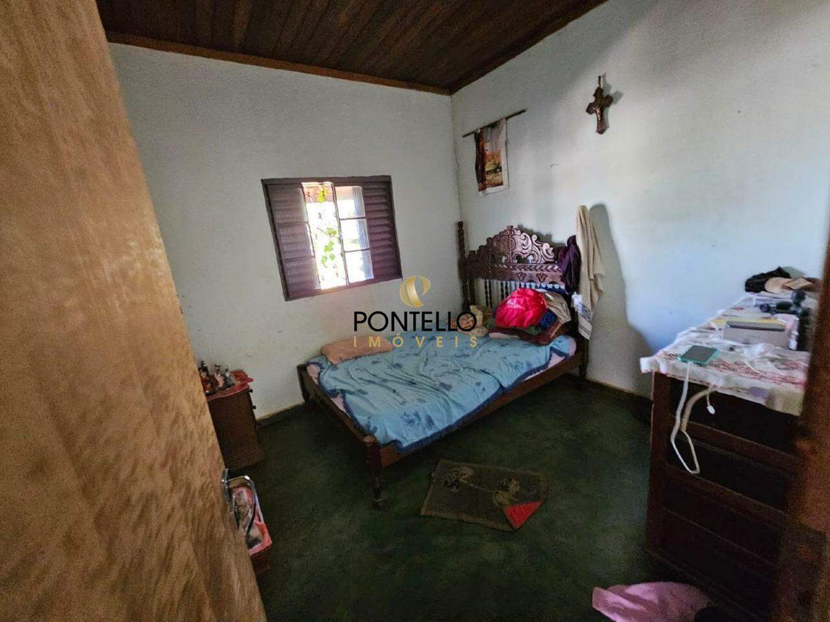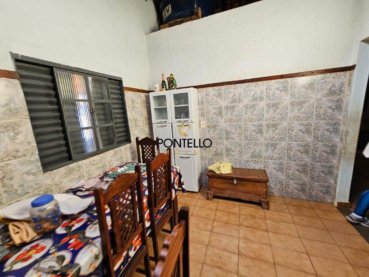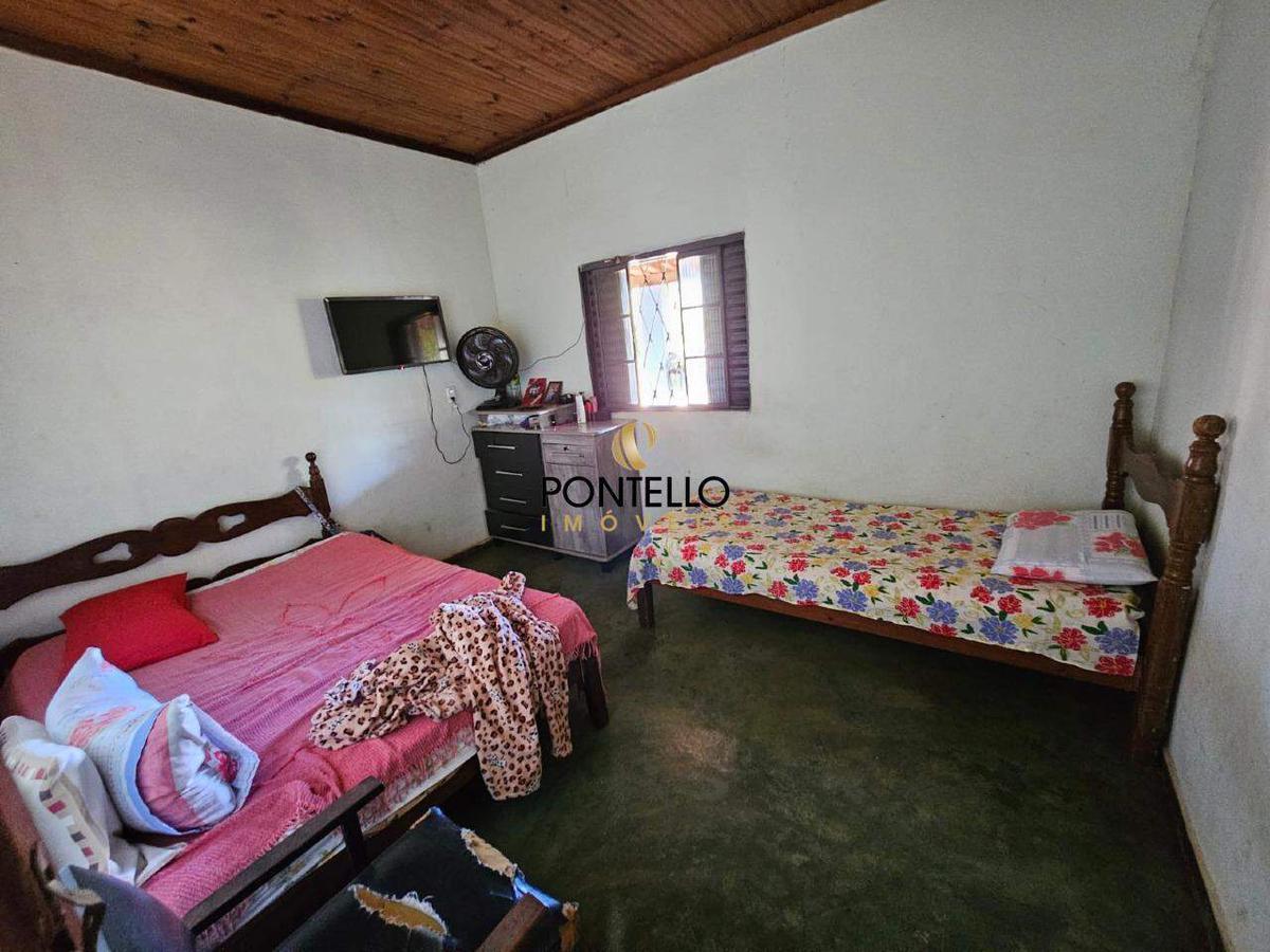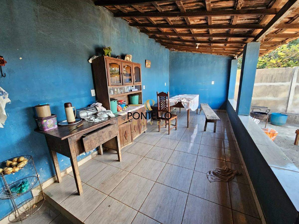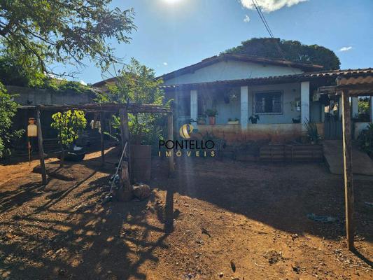 Chácara com 3 quartos, sala, copa, cozinha, banheiro social, varanda gourmet com fogão a lenha, banheiro externo, quintal, cômodo de despejo, galinheiro, canil.