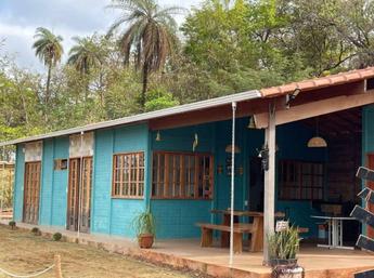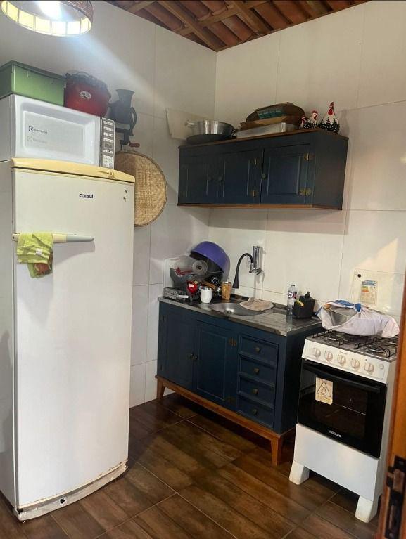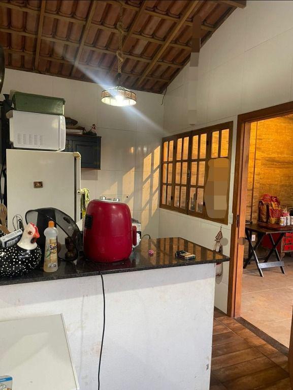 A casa é composta por 3 quartos com suíte, banheiro externo, varanda, área para churrasco, piscina, campo de futebol e estacionamento com vaga para 10 carros.