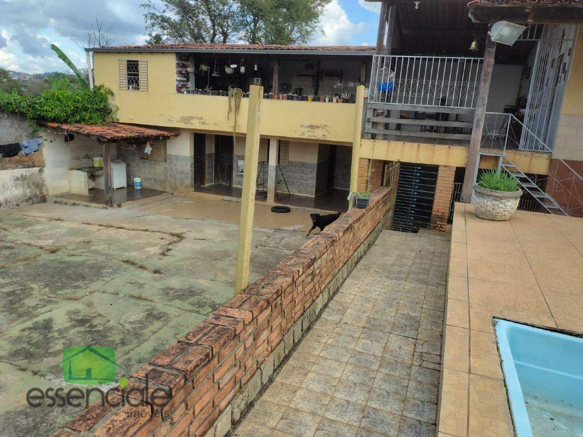 Sendo casa principal ampla com 3 quartos com armários,1 deles com suite, 3 salas, 01 banho social. Cozinha com varanda muito grande ,fogão a lenha. piscina, outra casa na parte de baixo da casa, de frente para a piscina, quintal grande, vagas cobertas para carro. O sitio esta em 2 lotes, com registros separado. Topografia excelente, rua plana perto a varias casas. Aceita apartamento na parte central de Belo Horizonte com valores equivalentes.