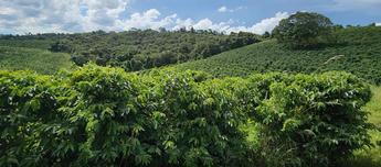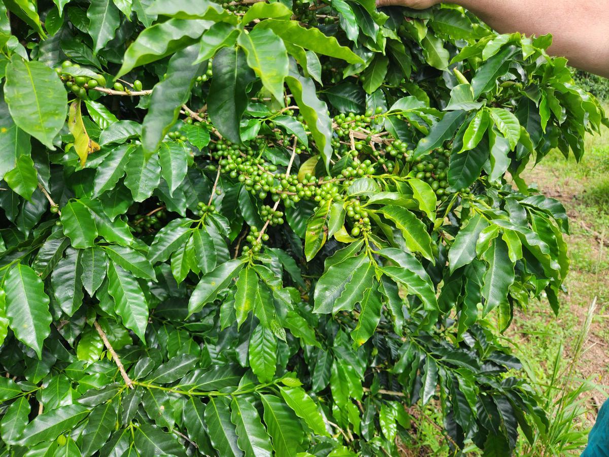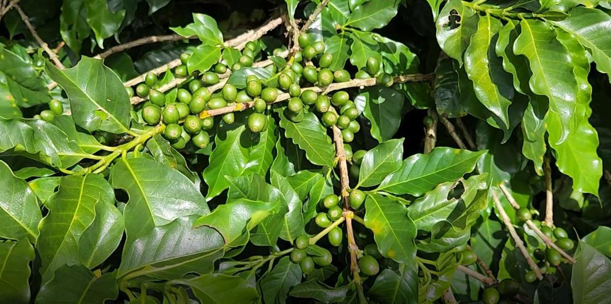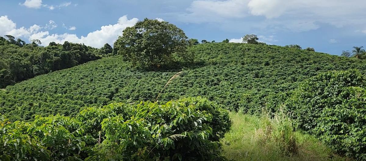 Lavoura de café com 120 mil pés plantados, nas variedades mundo novo, Catuaí vermelho e amarelo. Altitude 950 m