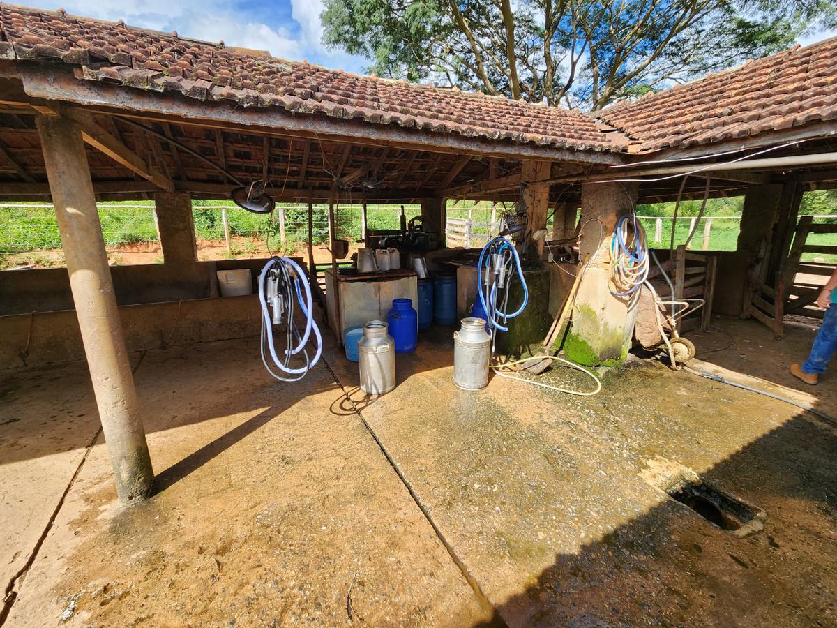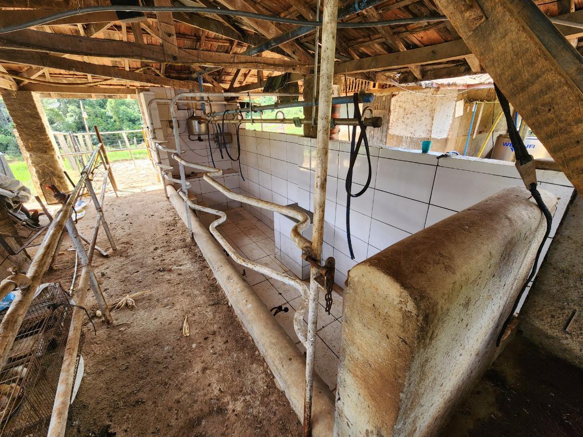 Pecuária de leite: capacidade para 100 cabeças. Curral, cocheira e ordenha. Boas pastagens formadas.