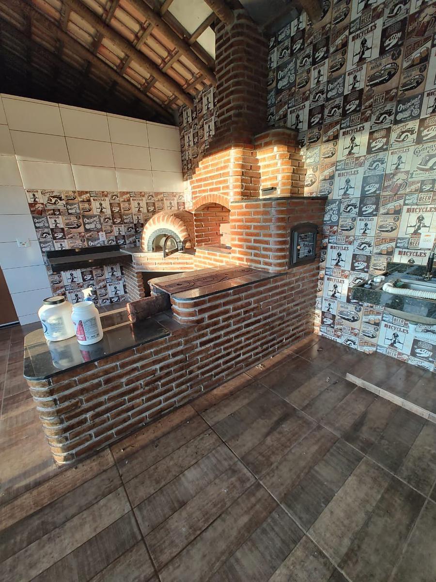 Área gourmet com churrasqueira, fogão a lenha;