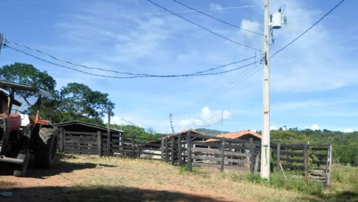 de currais, galpões, divisão, brete, balança, tronco e embarcadouro, tudo bem construído e em ótimo estado