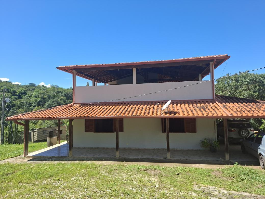 Casa ampla com aproximadamente 260 m , dois pavimantos, varanda em torno da casa com aproximadamente 120 m , vagas cobertas para ate 4 carros, pia, area de servico, fogao a lenha, quarto de despejo, , com duas salas amplas para ate tres ambientes, cozinha com armario. 01 Banheiro Social e 03 quartos sendo uma suite.
