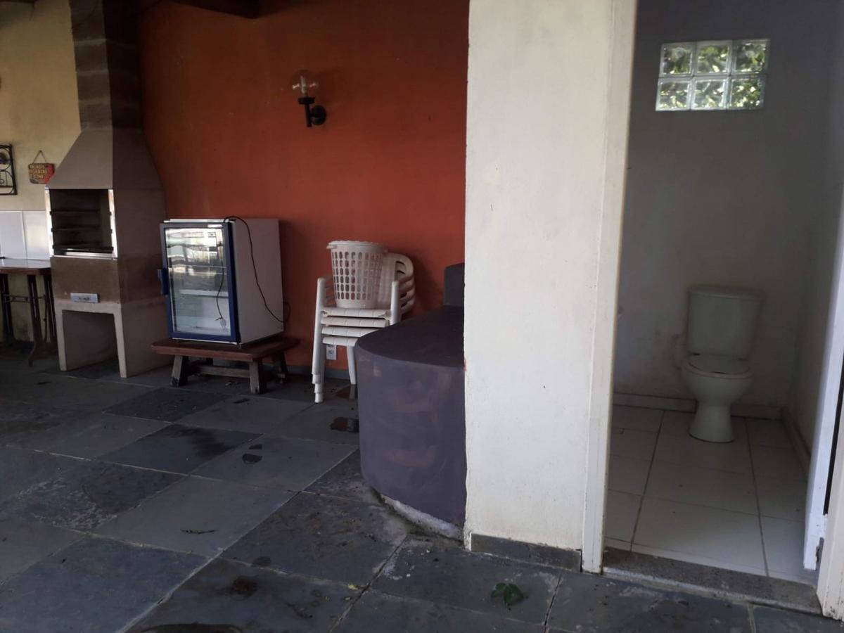 Área de churrasqueira com 30 m², banheiro social e fogão a lenha.