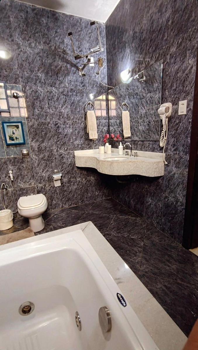5 quartos amplos, 2 suítes simples e uma suíte master com hidromassagem.