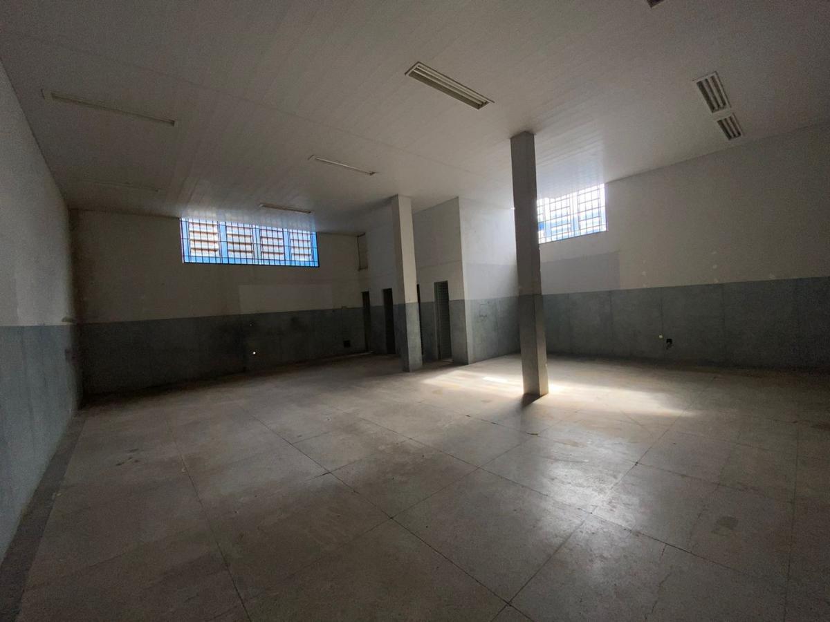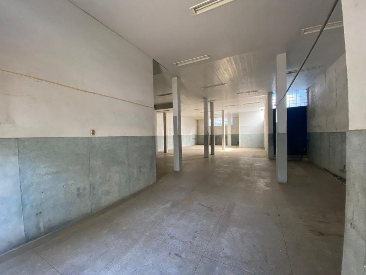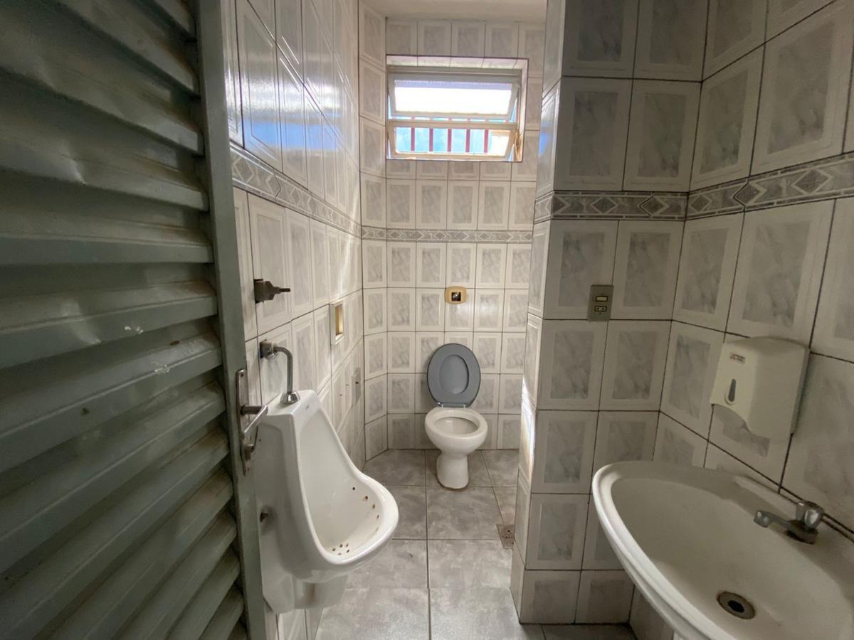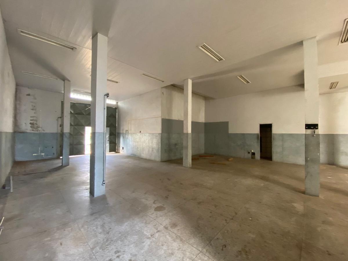 Galpão com 220 m², vestiários, escritório amplo, piso industrial, portão de fácil acesso para entrada e saída de mercadorias e caminhões.