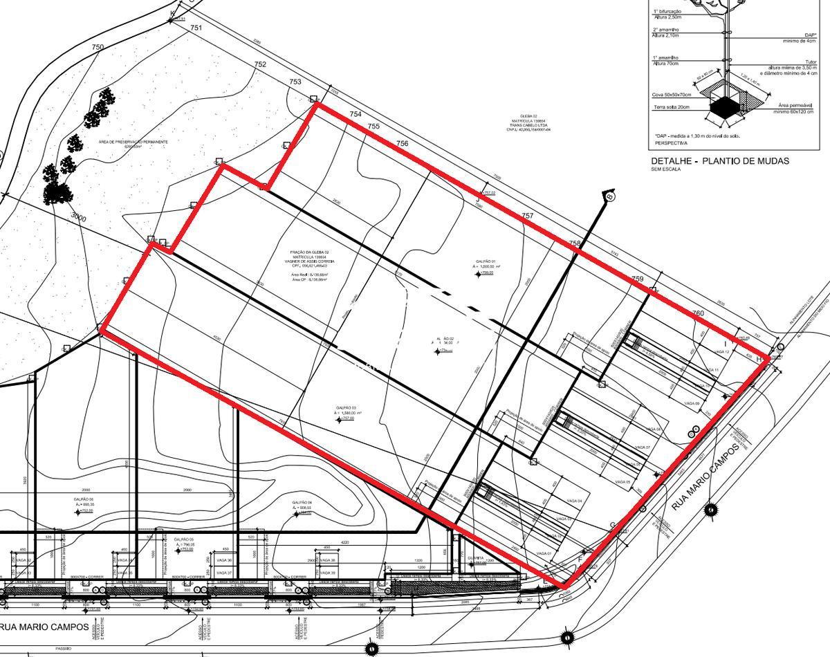 Galpão possui fácil acesso para manobras de veículos de grande porte, energia trifásica e possibilidade de aumento de área útil interna.