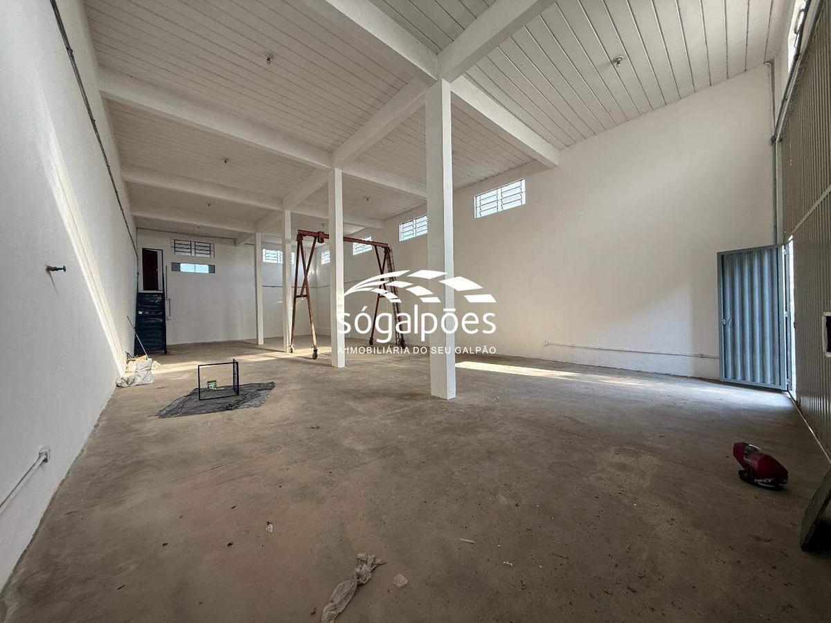 - 220m² de vão livre, piso industrial polido, pé direito de 5m.