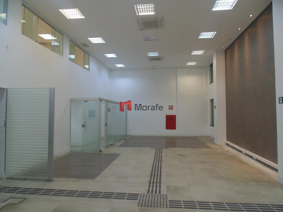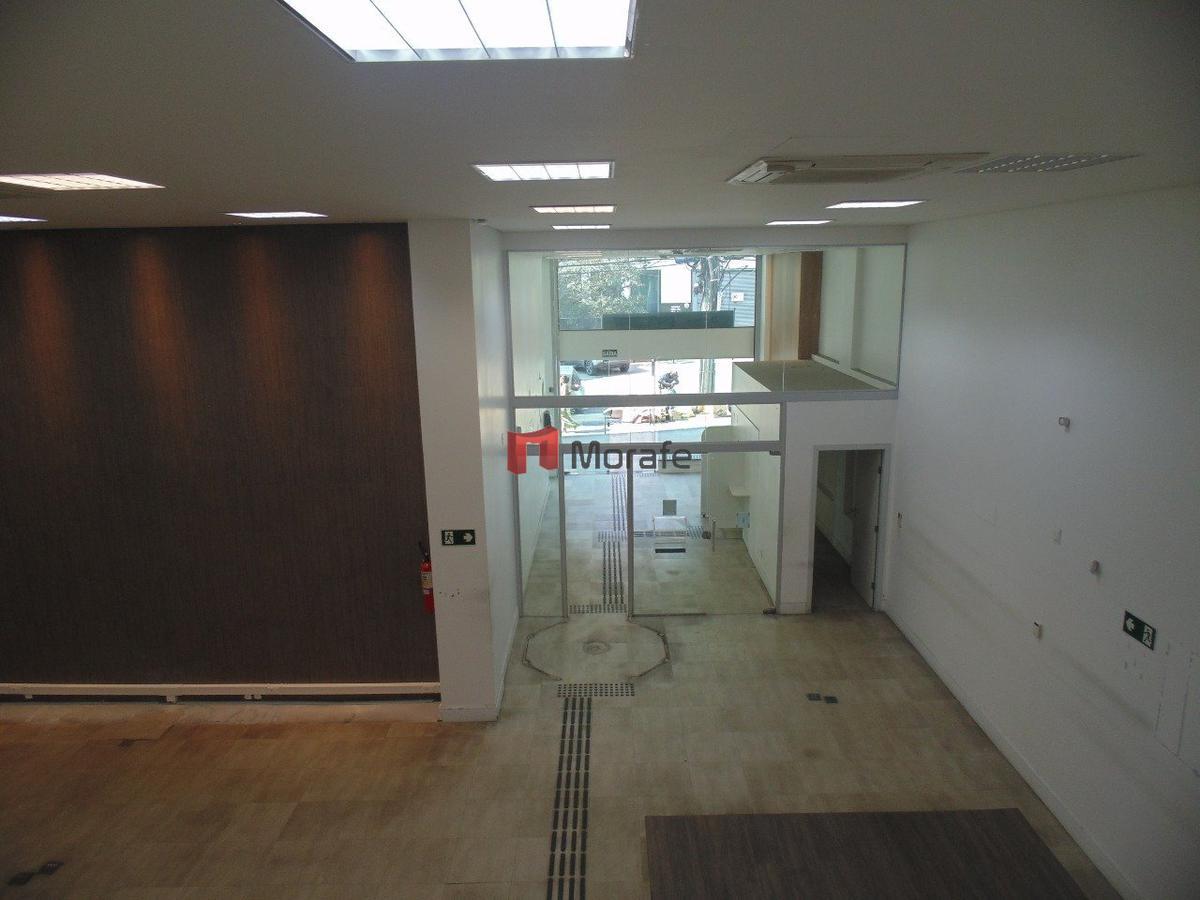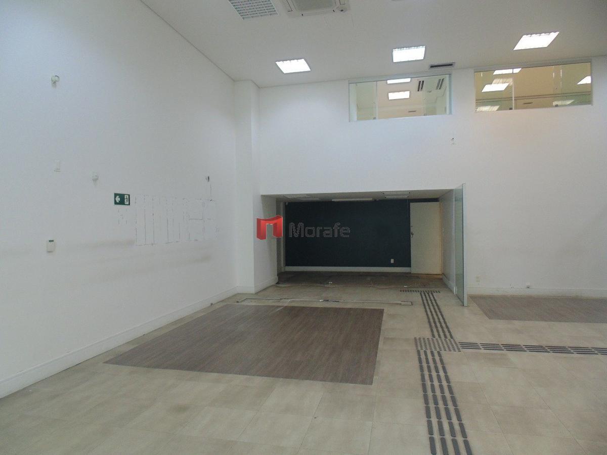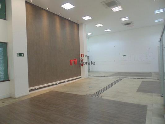 Loja com área total de 420 m2 (Loja com 290 m2 de piso e mezanino com 130 m2), pé direito de 6 metros, com uma área privativa adicional (salas para depósito, refeitório, etc) ao nível de garagem com 50 m2 , possui também 4 vagas de garagem no subsolo.