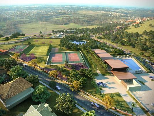 Lote em condominio de altissimo padrão. Portaria monitorada, segurança 24 horas, complexo de lazer com piscina adulta + infantil, são de festas, spa, sauna, salão de jogos, bar, espaço gourmet, espaço kids, tudo de altissimo bom gosto. Centro esportivo com quadra poliespotiva, capo de futebol gramado, 2 quadras de tenis, quadra de peteca, lago e muita area verde.