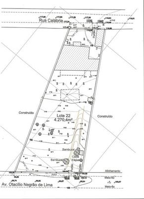 Código: 40413 Lote ou área de 4.390 m². Visto da Av. Otacílio Negrão de Lima, ele tem um aclive. Visto da Rua Calábria, ele tem um declive. Pode ser comercial e/ou residencial. Tem acesso ao lote pela rua Calábria, 774 = CARACTERISTICAS: