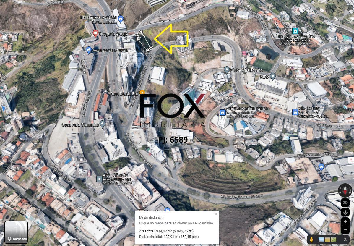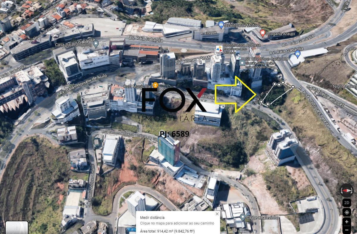 Lote com projeto arquitetônico feito, no estoril divisa com santa lúcia. lote de 915m² em via de alto fluxo, divise entre no estoril divisa com santa lúcia, caminho do buritis. foi realizado um projeto arquitetônico da oscar ferreira arquitetura contemplando um prédio de 05 pavenidaimentos com 24 salas comerciais, 1 loja e 30 vagas de garagem. descrição: - 01 lojão com aproximadamente 263,00m²; - 01 sala comercial com aproximadamente 17,20m²; - 01 sala comercial com aproximadamente 13,00m²; - 22 salas comerciais tipo com aproximadamente 23m²; - 30 vagas de garagem, sendo 28 autônomas e 2 pne. informações técnicas zoneamento: om-1 - ocupação moderada - 1. coeficiente aproveitamento básico de transição: 1. taxa de permeabilidade: 30%. área de diretrizes especiais (ade): ade serra do curral. aproveite a oportunidade: agende uma visita! (o preço pode ser alterado sem avenidaiso prévio)