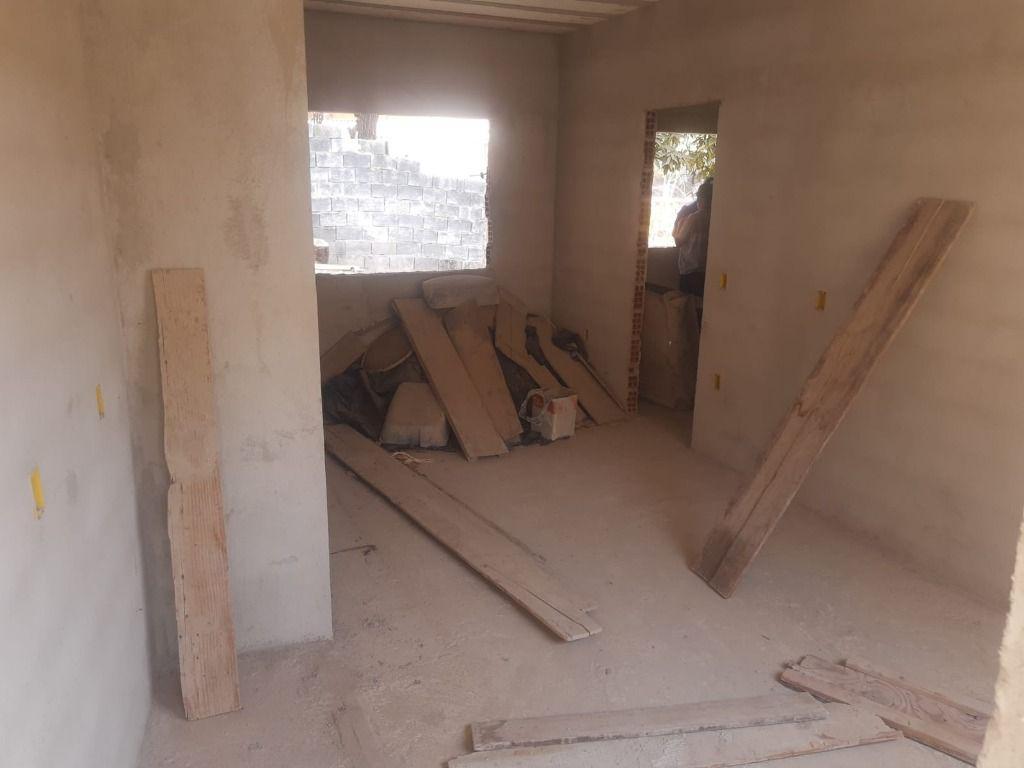 Lote de 380m² com construção em estado avançado, com 3 quartos sendo 1 suíte, banheiro, sala, varanda, área de serviço, galpão com 64m² já com potão, vaga de garagem e uma grande área livre.