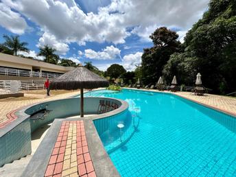 Área de lazer com paisagismo exuberante