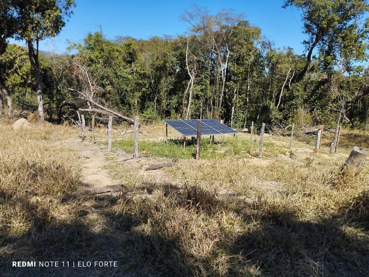 Poço semi artesiano com placas fotovoltaicas. Topografia e terras mistas.