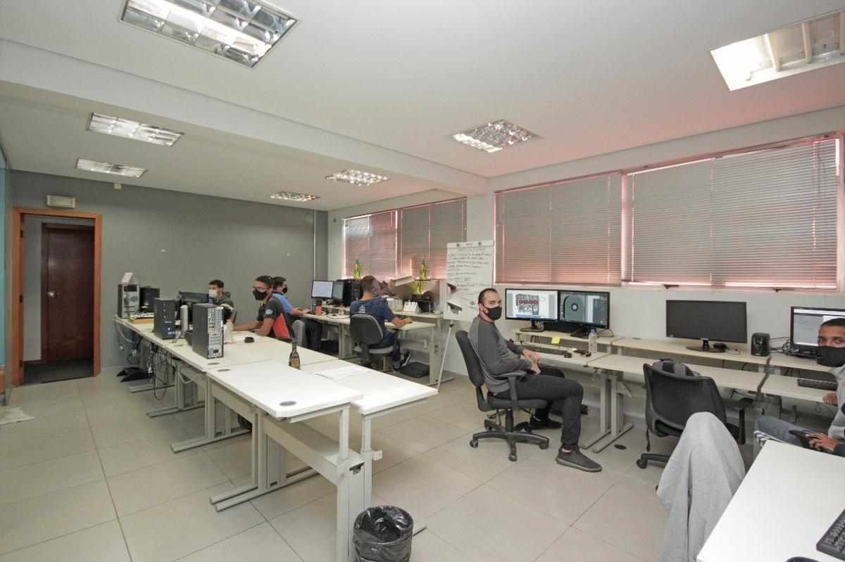 753m2 divididos em Drywall, teto rebaixado em gesso com projeto de iluminação, 4 banheiros, sendo 1 vestiário.