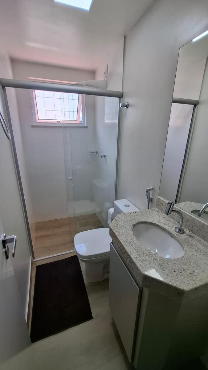 Toda em porcelanato, cozinha estilo americana, bancada em granito e armário, banheiro em porcelanato,, bancada em granito, armário , box em vidro temperado e chuveiro, área de serviço.