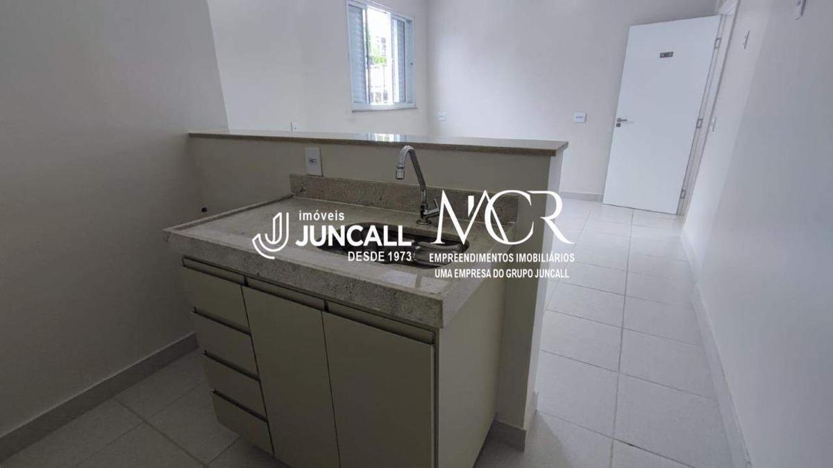 Kitnet com aproximadamente 30m² distribuídos em sala com quarto conjugado, piso em cerâmica, banho social com armário e box.