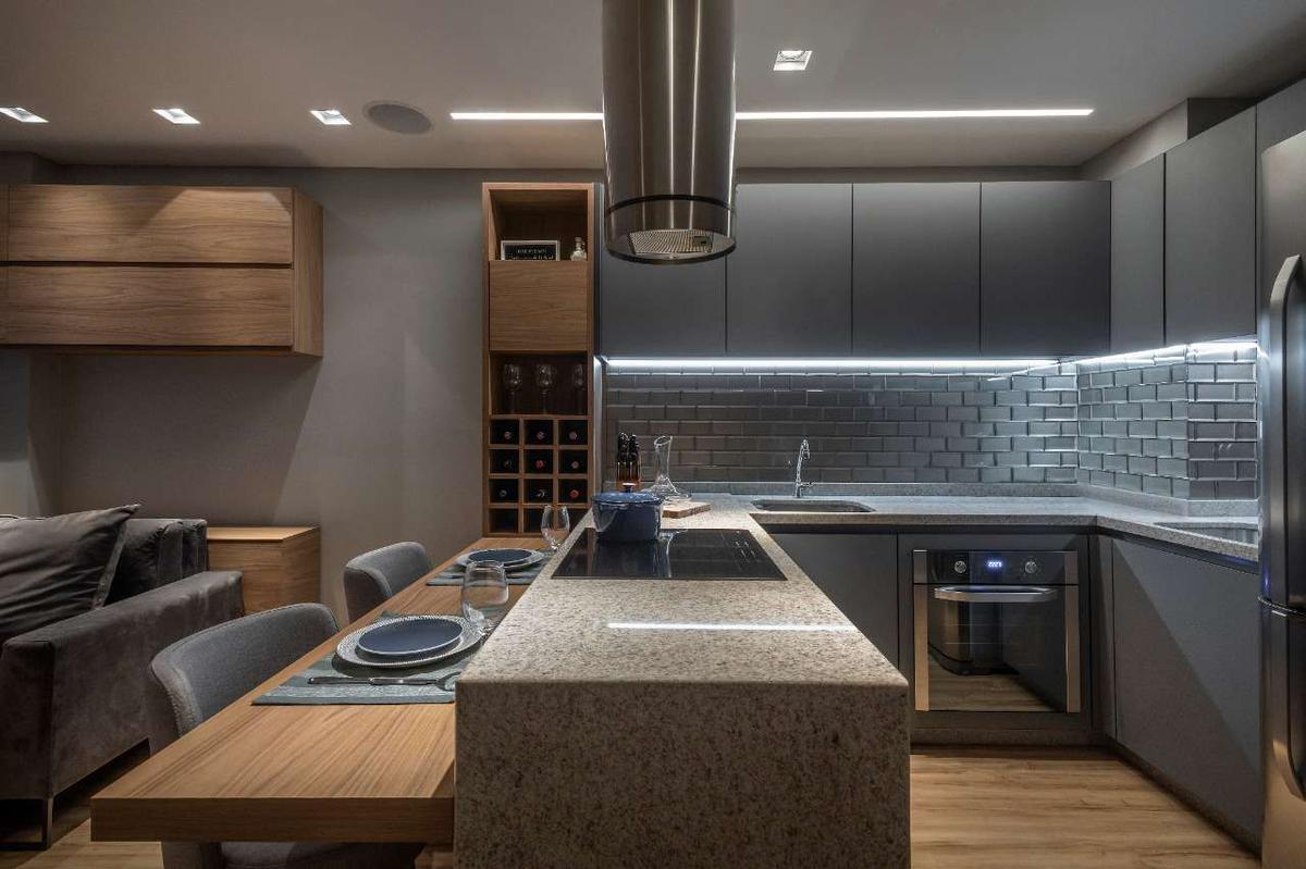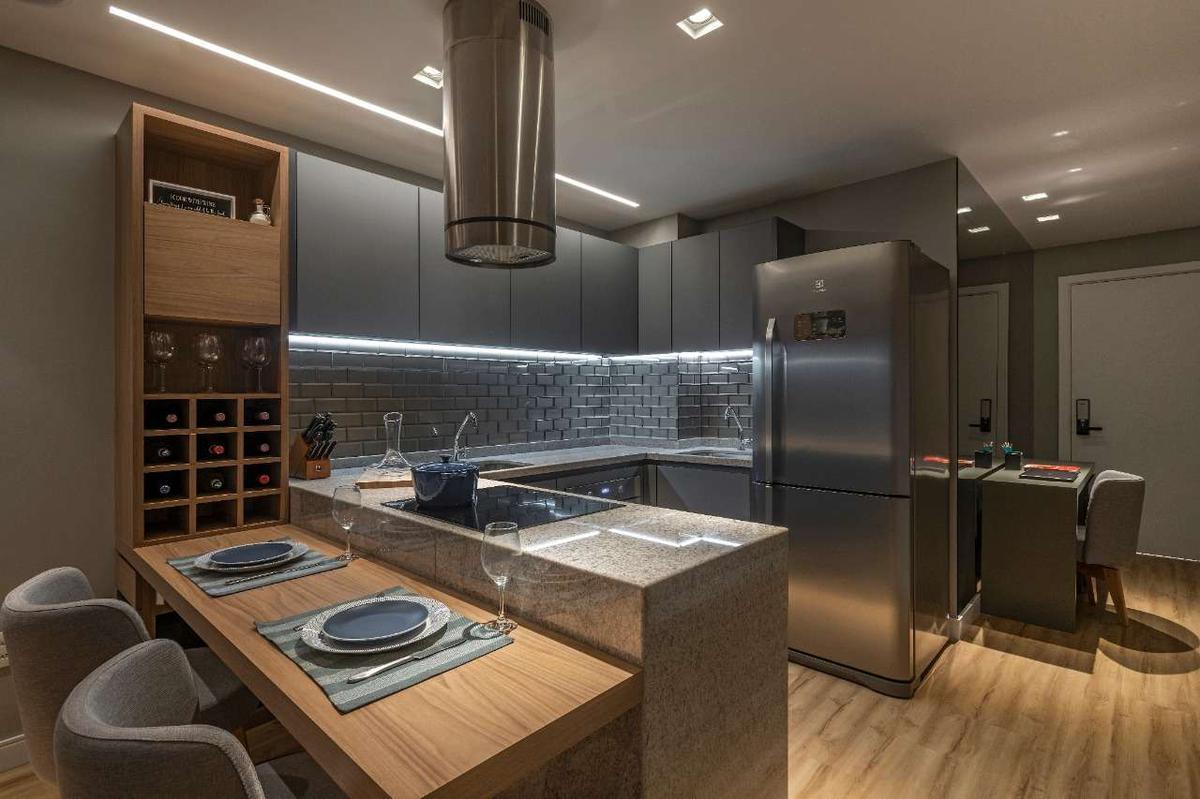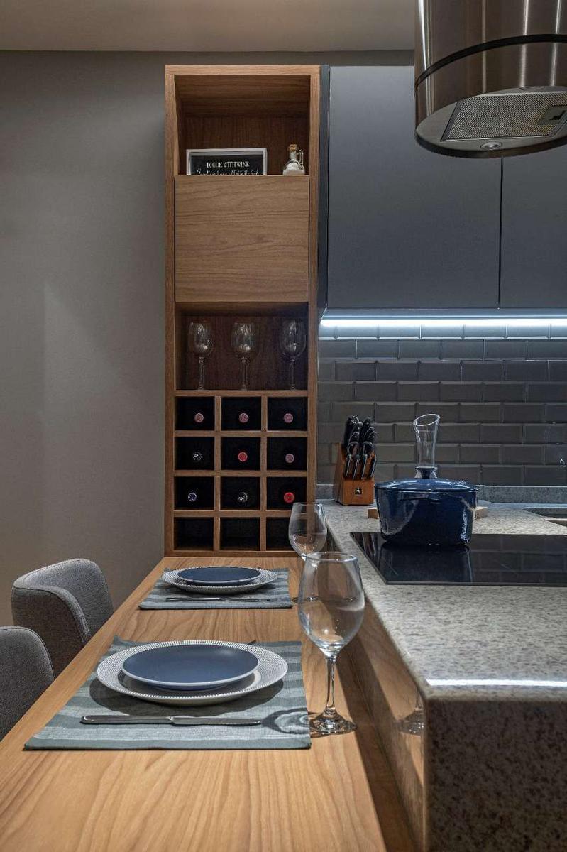 Cozinha: Com armários planejados e espaço para utensílios.