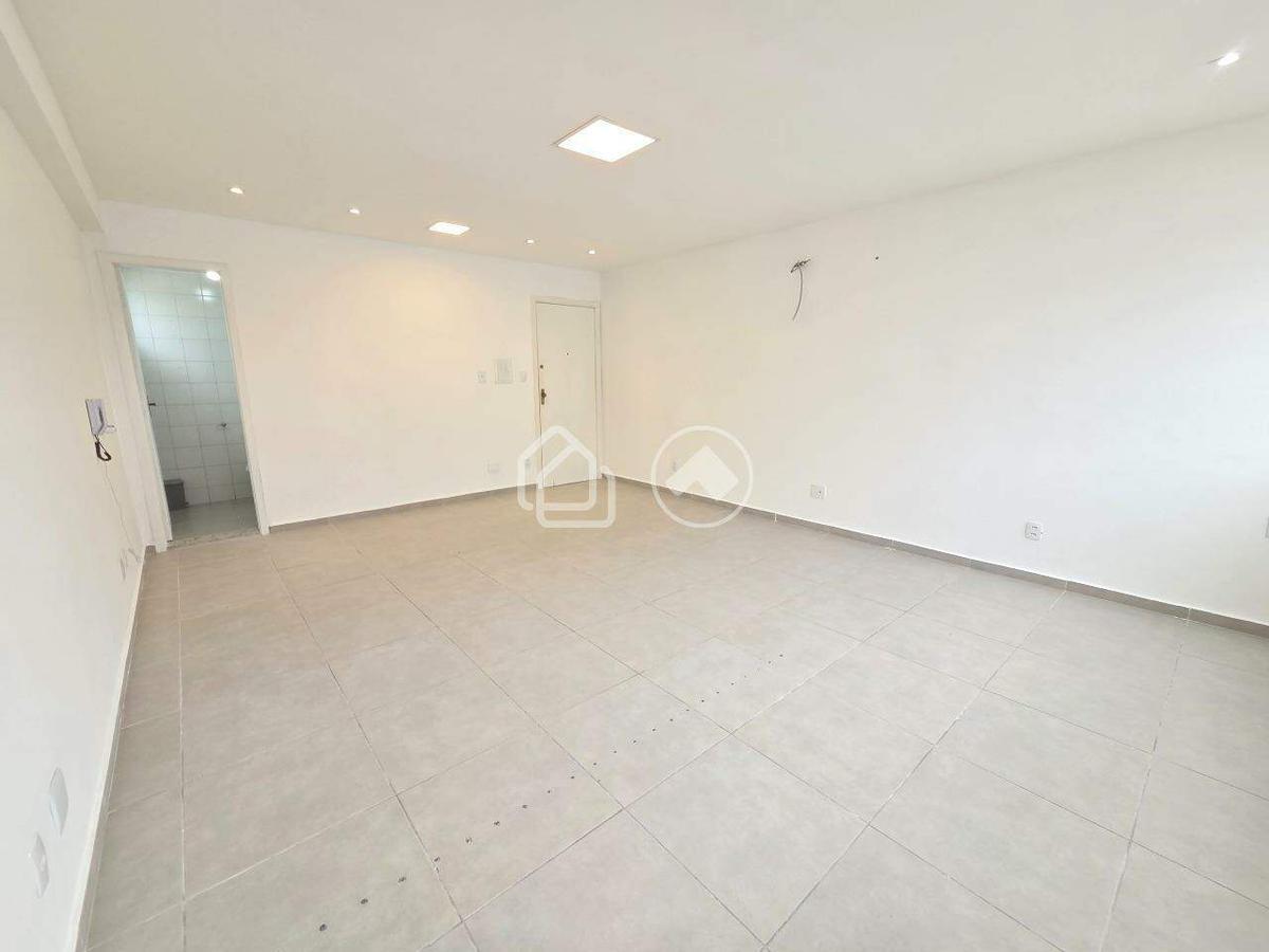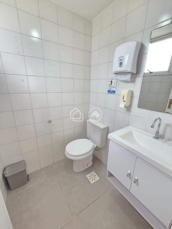 Sala com piso em porcelanato, arejada com ampla área envidraçada e 01 banheiro privativo banheiro.