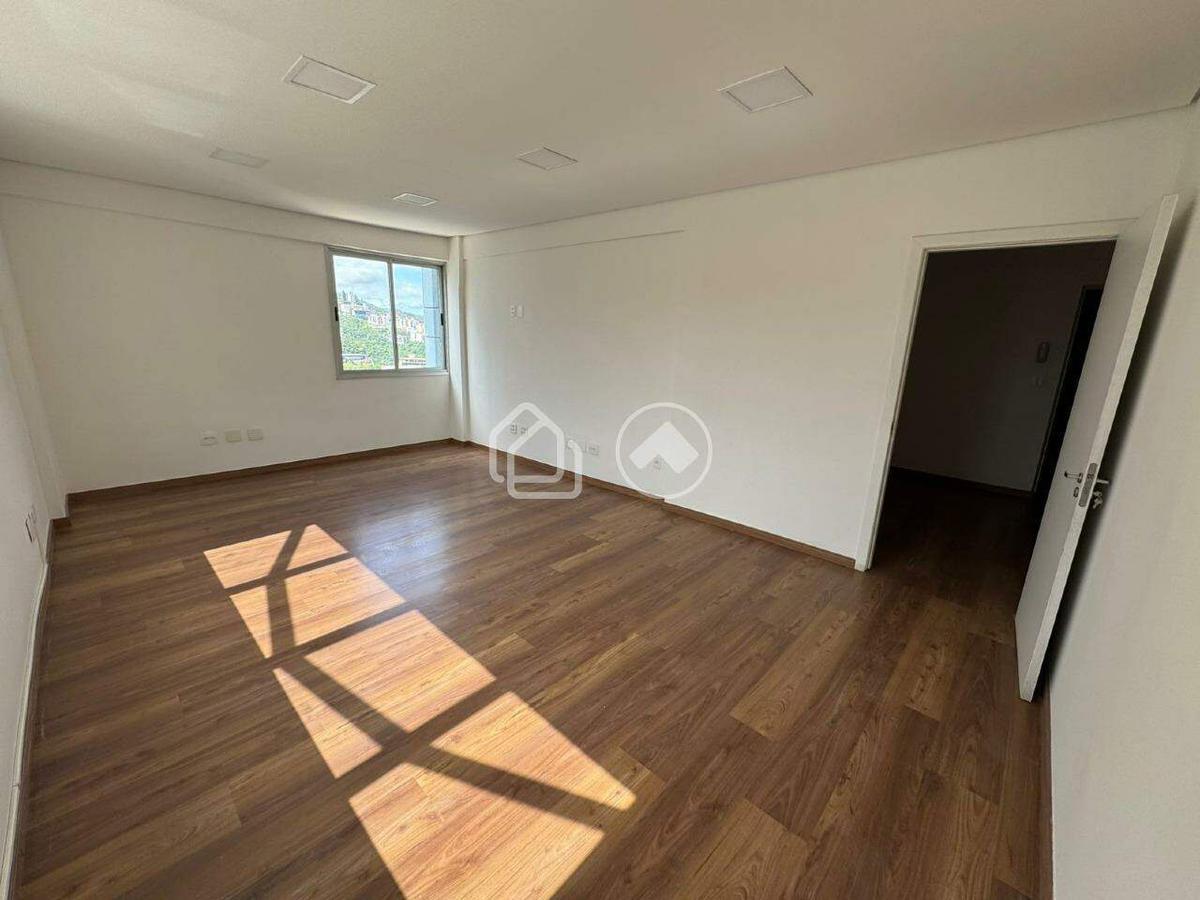 Sala comercial de 41 m² (útil) com posição de frente, em prédio de 12 andares no Buritis, BH. Conta com 1 sala e 1 banheiro, acabamento em cerâmica, ar condicionado, cabeamento estruturado, circuito de TV, interfone e portaria 24h. Vista para montanha, 2 elevadores e 3 unidades por andar. Localização prática com aluguel de R$ 1.900, condomínio R$ 497 e IPTU R$ 182,19/mês. Excelente opção para quem busca conforto, segurança e facilidade de acesso.