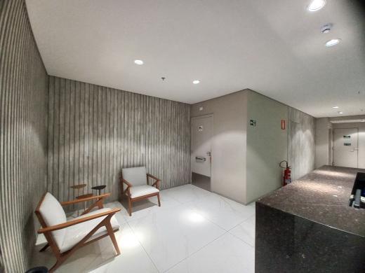Sala ampla com 103 m de area fechada. Possibilidade para varios layouts, podendo montar seu negocio de acordo com seu projeto, pre disposicao para ar-condicionado e combate a incendio, com 01 banheiro e predisposicao para segundo banheiro.