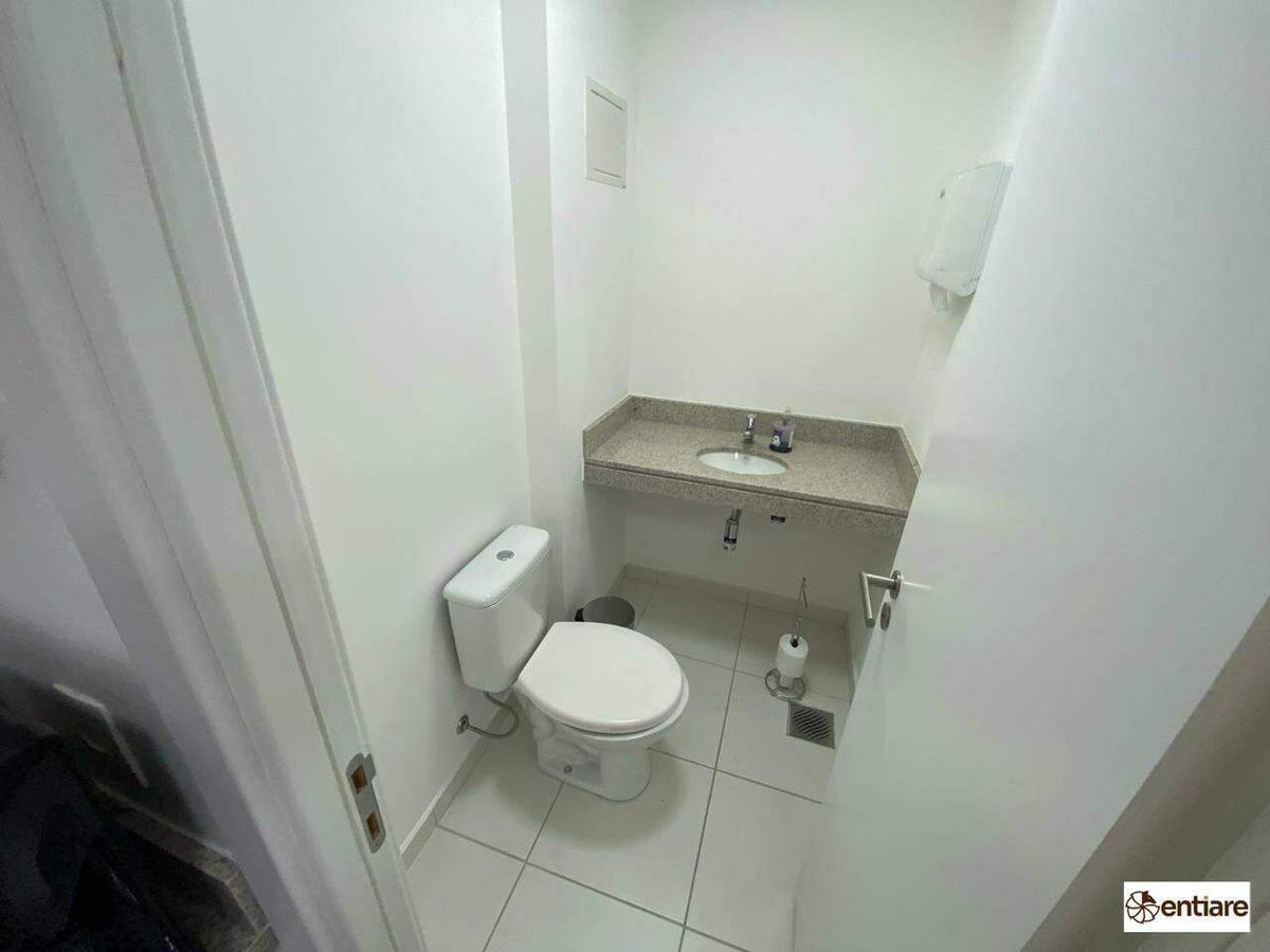 A sala conta com 1 lavabo com armários, 1 vagas de garagem cobertas, boa iluminação e ventilação, em um excelente prédio comercial!