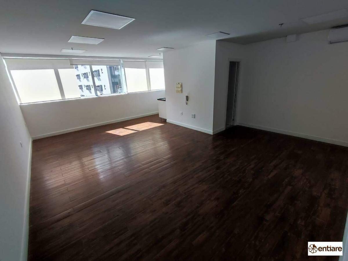 A sala conta com 1 lavabo, 1 vagas de garagem cobertas, boa iluminação e ventilação, em um excelente prédio comercial!