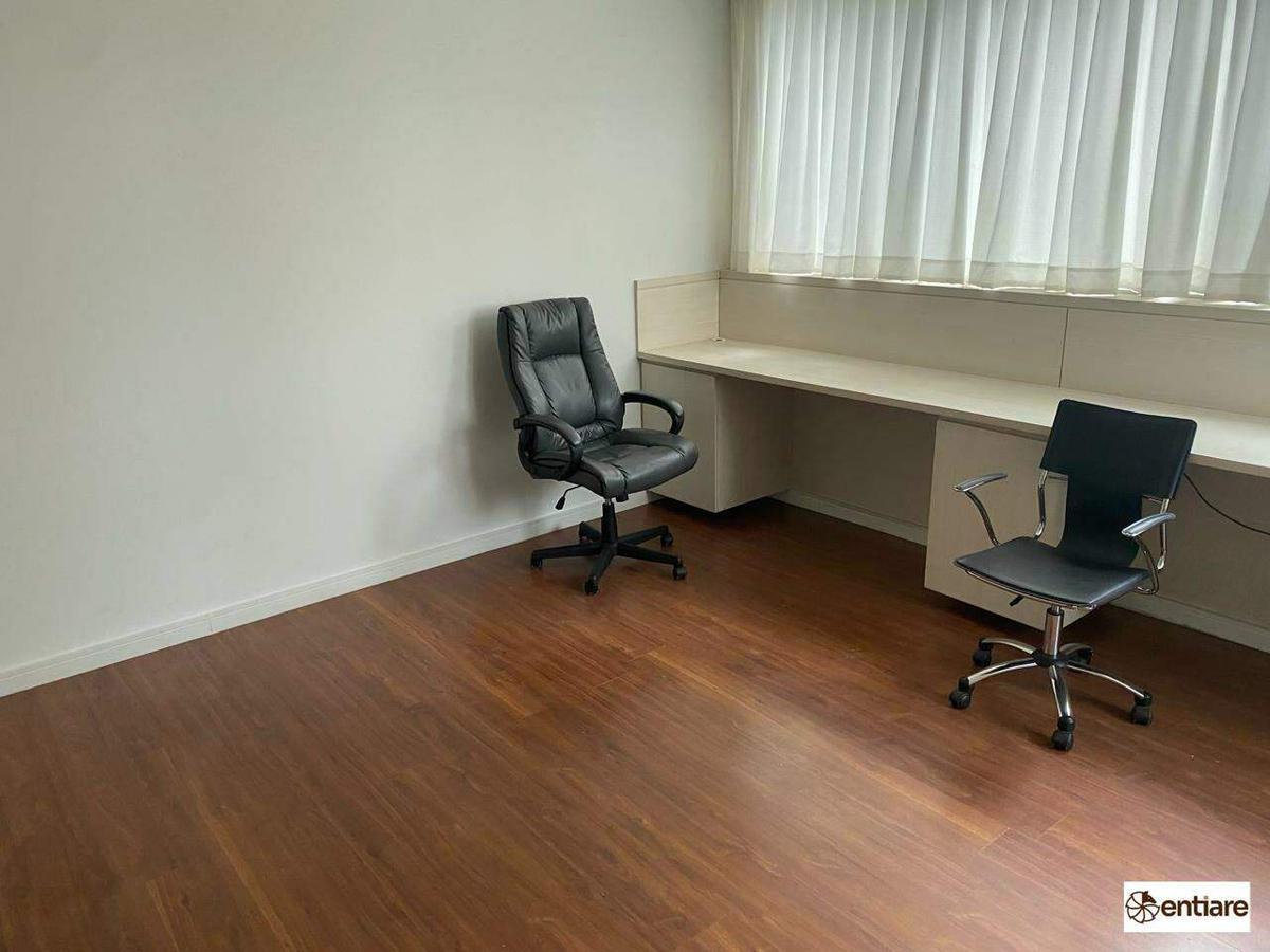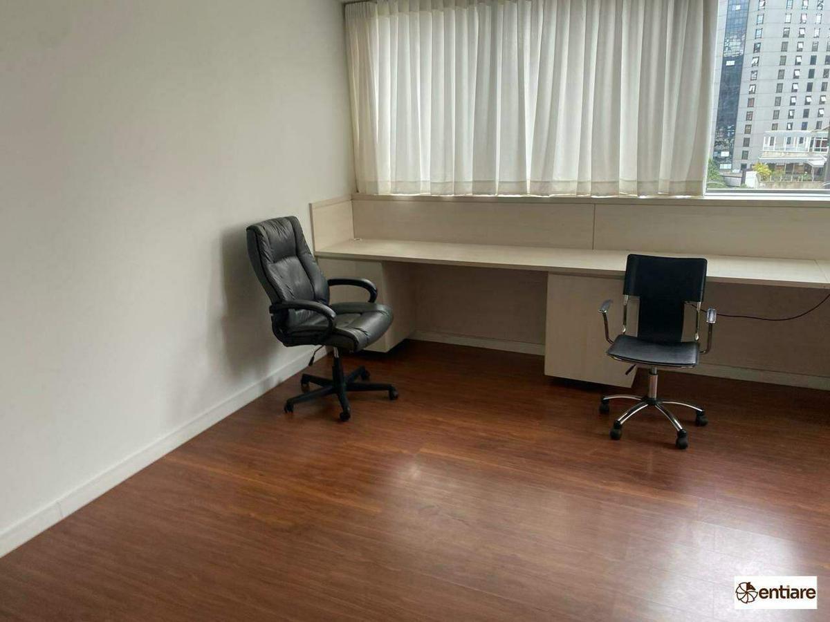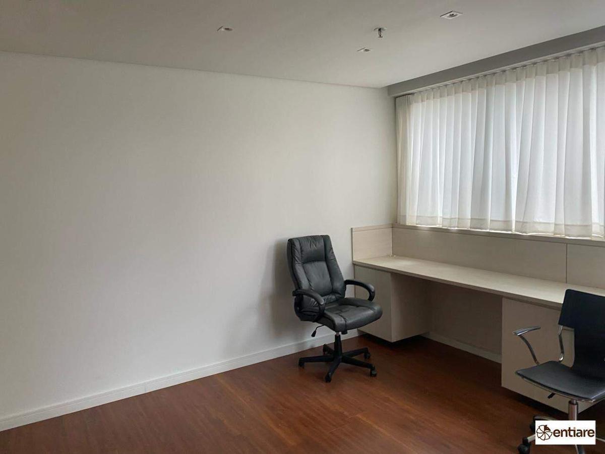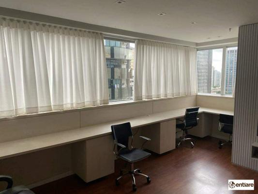 Sala comercial toda montada. O imóvel está em um condomínio super imponente com portaria 24 horas, hall social com porta automática, reconhecimento facial e 4 elevadores.